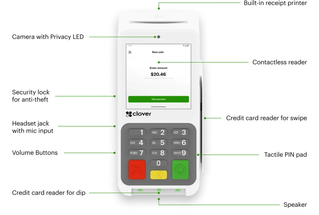 Payments: Accepts contactless, chip, swipe, and debit PIN payments