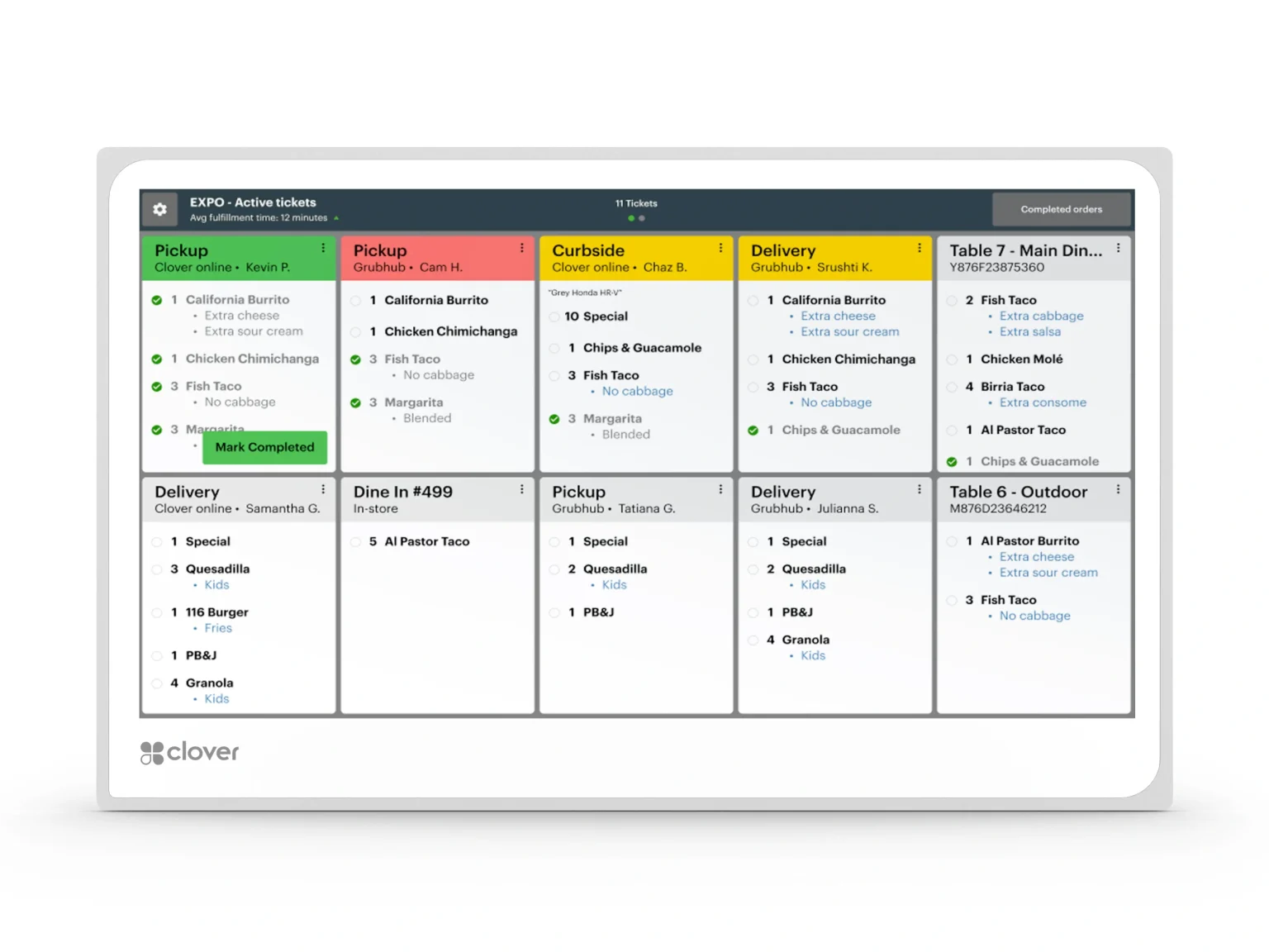 - The Clover KDS is purpose-built for food service and kitchen environments with a temperature resistant body that has the highest heat tolerance (122°F) on the market.